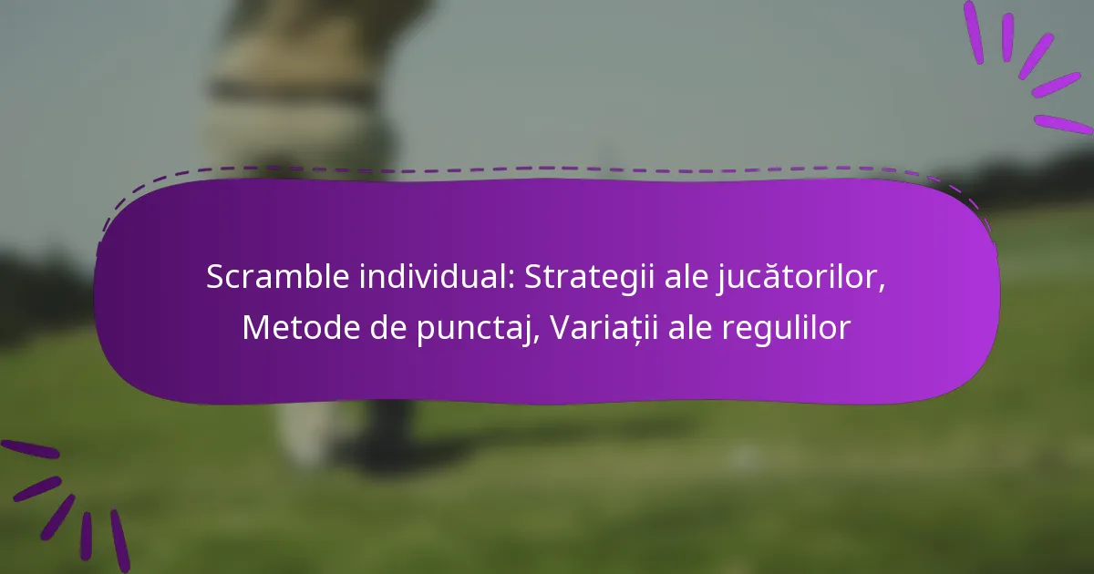 Metodele de punctaj în Scramble individual determină modul în care jucătorii acumulează puncte pe baza performanței lor. Înțelegerea acestor metode este crucială pentru a strategiza eficient în timpul jocului, deoarece acestea pot influența semnificativ scorurile și clasamentele generale.